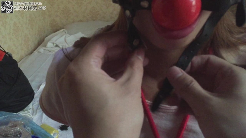 红绳驷马捆绑 口塞 强制挑逗刺激 龟甲 肉丝 黑靴