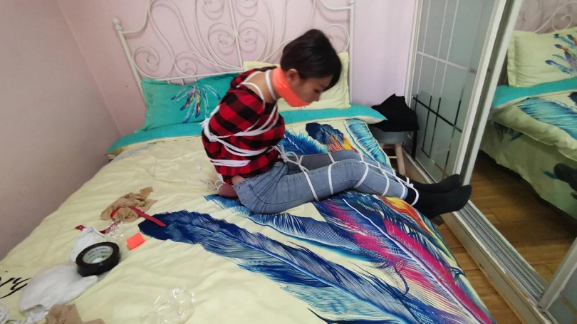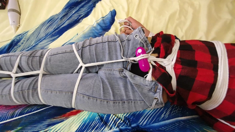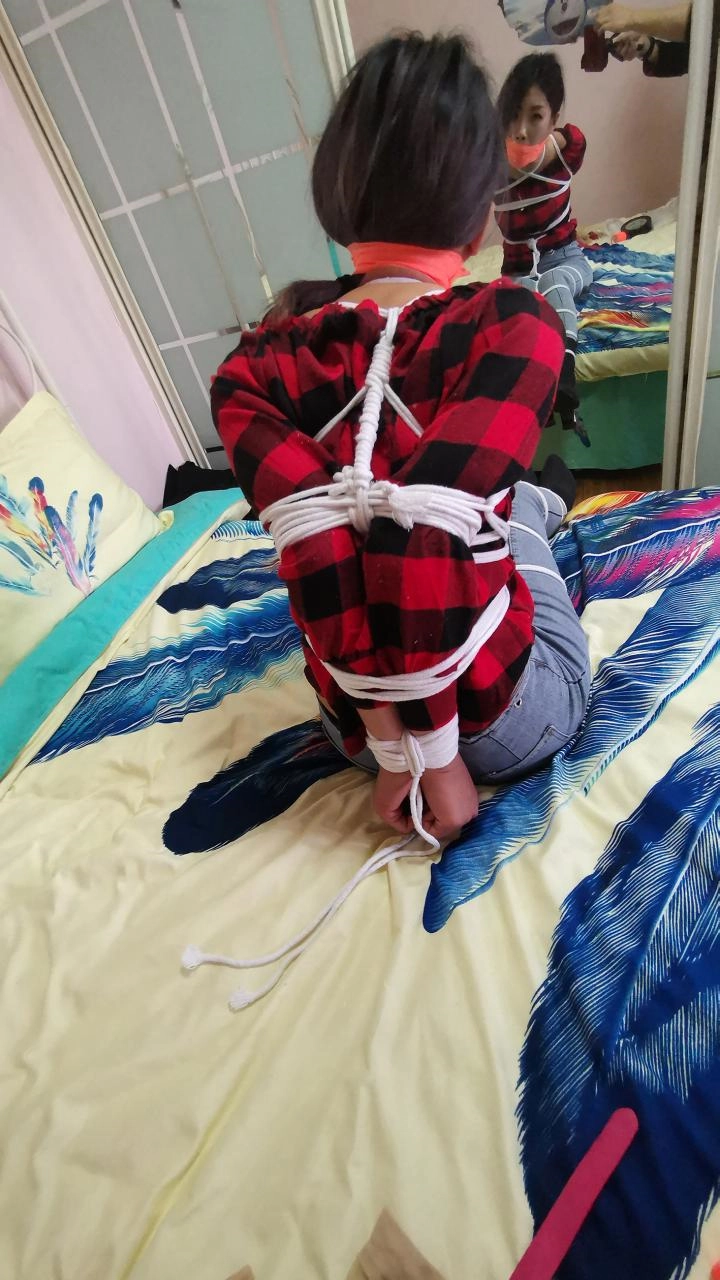 美女回家后无聊,自己玩捆绑,刚绑完腿脚,谁知进来了劫匪,把她一顿虐捆绑,并用震震让其GC,其他不多说,自想。