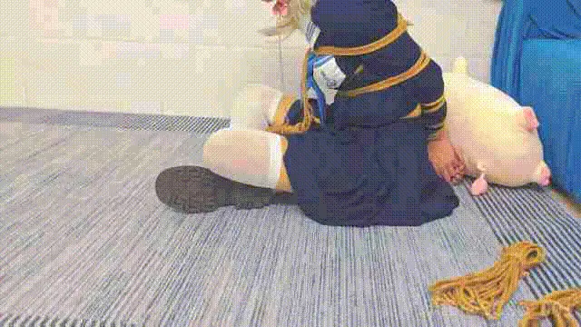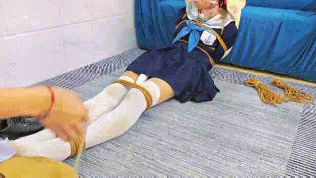 把小m捆绑后带上口球铃铛再蒙眼,没有对话,只有呜呜呜!再塞入快乐棒,将m直臂绑在身后,刺激着水手服的小m,快乐棒在刺激绝顶几次后早已瘫痪枯竭