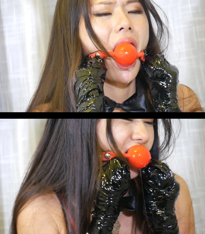 美女这才知道为什么男人要包裹她的双手,自己的手球根本无法取下塞口球,口水羞耻的不停流出,实在都拉丝了,美女又急又气根本无法阻止。