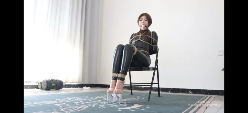 性感美女身穿皮衣脚踩透明恨天高化身美女搜查官,被捆绑口球堵嘴只能无助的呻吟流口水,还被换上多种胶带封嘴,挣扎反抗却无济于事,只能任由口水不断的流出,模特呻吟很不错,口水也很多