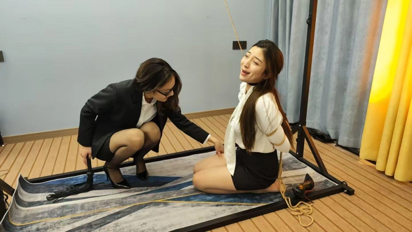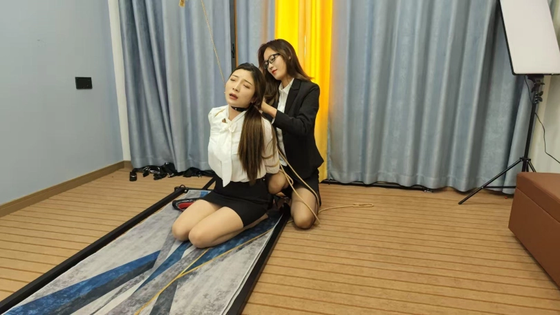 晓倩是一家公司老板,喜欢调教女M,这一天找借口把佳佳训斥,逼迫佳佳在办公室直接下跪,[X_X],高跟鞋踩踏,最后带上项圈,让佳佳直接在瓷砖地板上爬行,疼的佳佳叫声连连,带到调教室,把佳佳栓到架子上,五花大绑,项圈勒的佳佳喘不过气来,泪流满面,最后一直哀求放过,女老板那肯轻易放过,强迫佳佳跪好头按地,皮鞭抽打,[X_X],打胸,经过一系列的调教,最终把佳佳成功的调教成一名小母狗,乖乖的跪在女老板面前,这次是晓倩和佳佳联合演出的女女调教大戏,非常精彩,大家喜欢的话接着拍续集,晓倩会穿一身黑色胶衣,尽显女王本色,佳佳穿一身红色胶衣秒变小母狗,听从晓倩深度调教。