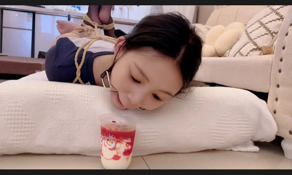 长得像网红的小姐姐驷马体验戴着口枷尝试舔冰淇淋
