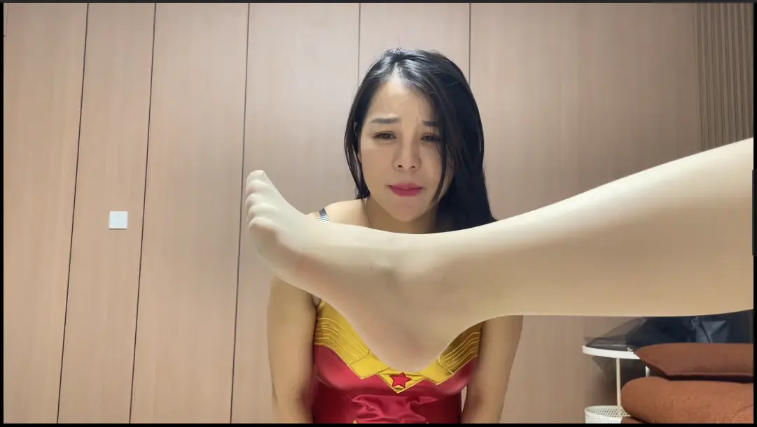 女魔王:想不想闻本女王的玉足啊?神奇女侠一脸渴望的表情,向女魔王双脚凑过去。