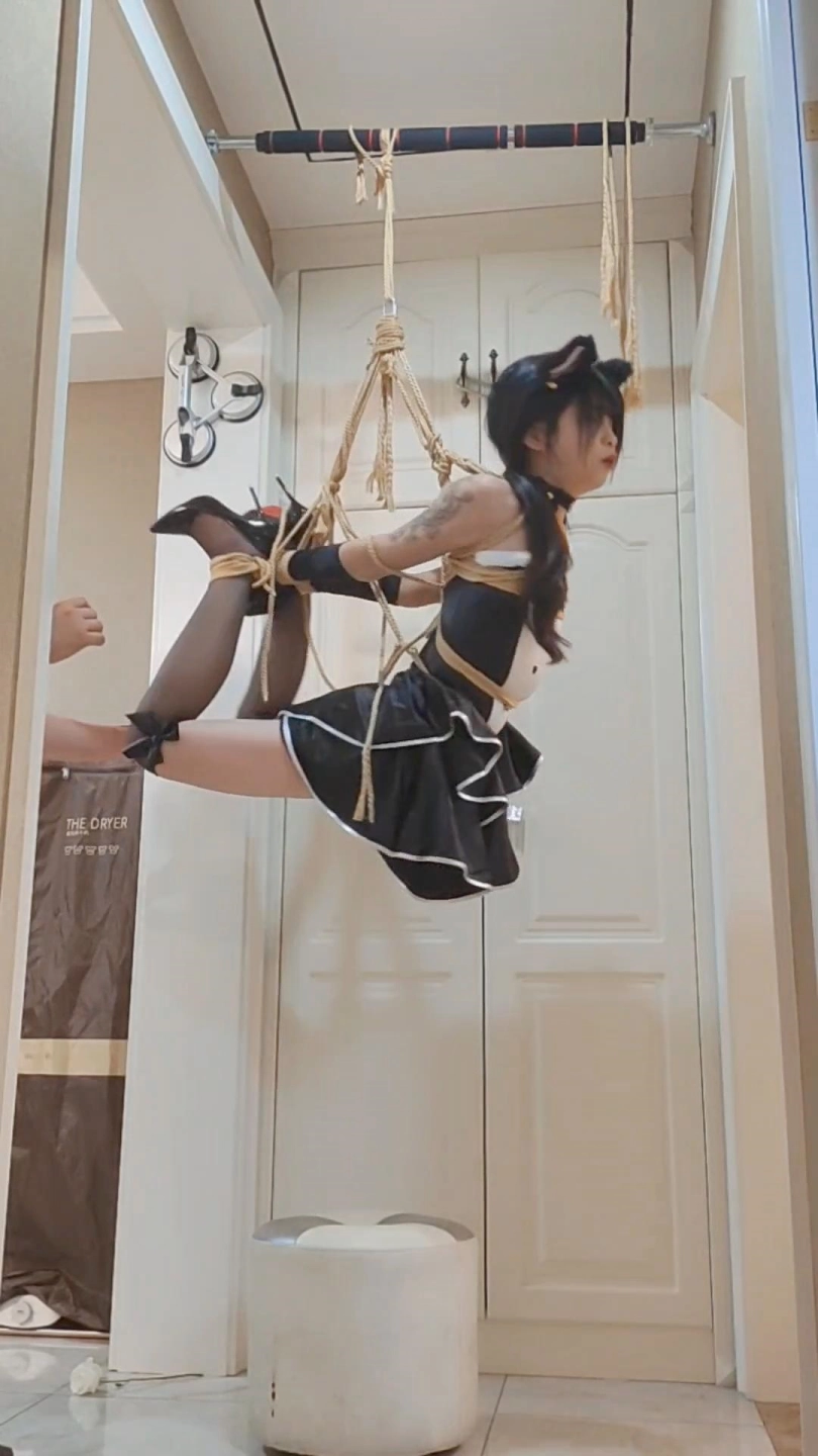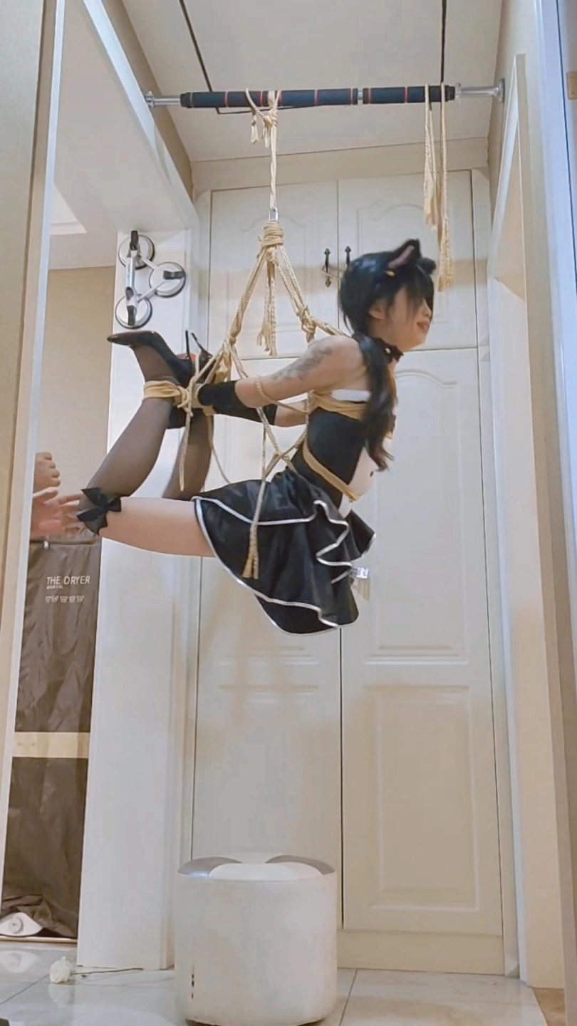 最极限的,后手驷马吊,单根声音直接拉上天,痛苦程度就不用多说了,m的承受能力直接拉爆,在天上不停的转圈圈被转到低血糖,一只呜呜呜的大喊我快死了!!!甚至喊出我在也不让你绑我了的口号,多次多种天上驷马吊缚,再加上强高,最后放下来继续前后交替突突,突完后面洗都没洗继续突前面,前面过后又后面,惨不忍睹!