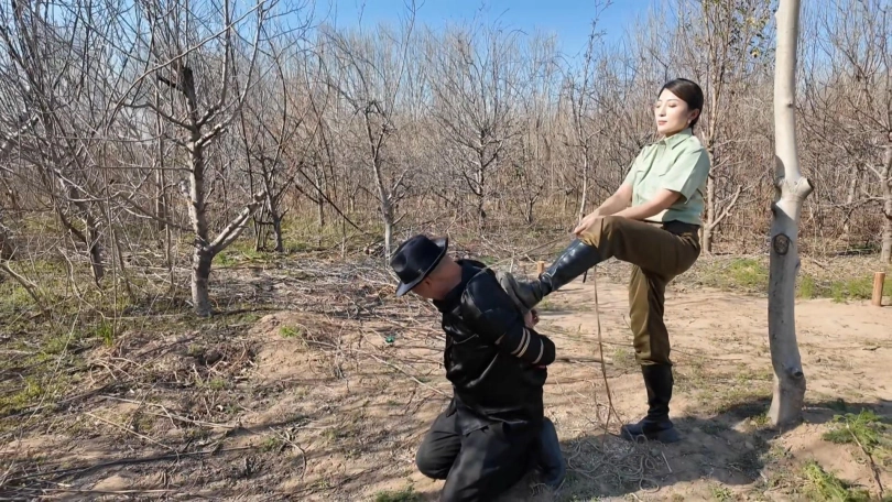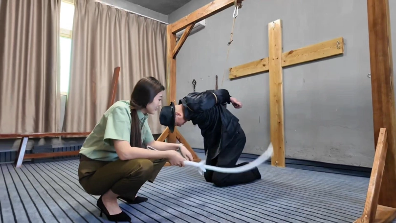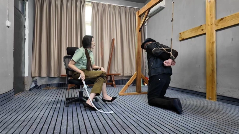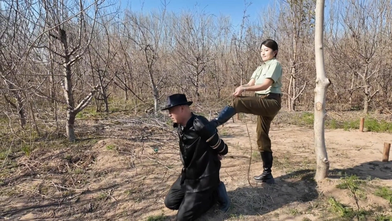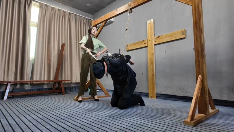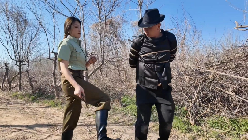 女军官在搜捕汉奸,把汉奸抓起来狠狠抽打,最后处决.....