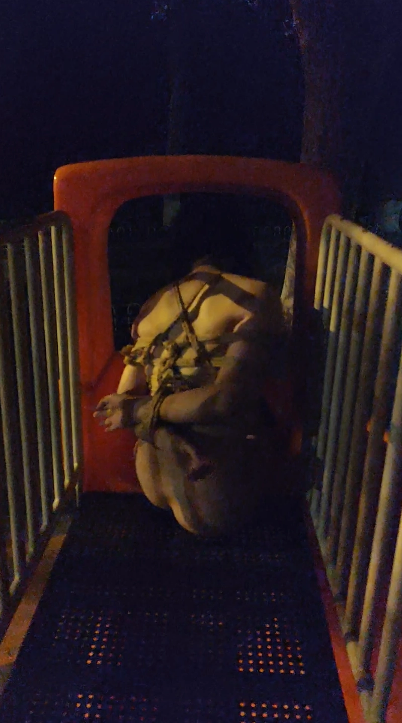 是最大胆的一次,露露选择夜晚全裸只穿了一双黑色过膝袜,日式捆绑在公园散步,如果遇到人就只能被看的一览无余。