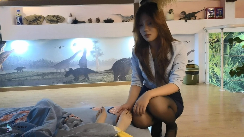 到了晚上女三看女二睡着了,自己偷偷起来,慢慢的走到了女一的房间门口,打开门,看见女一正盖着被子睡觉呢,女三偷偷的走到女一的床底,慢慢把被子掀被子露出一双美脚,女三心想这双美脚真漂亮啊,女三慢慢的用手去碰触女一的脚底,没有反应,女三大胆了起来,伸出双手握住女一的双脚抚摸女一的脚背脚心,突然女一动了一下,女三瞬间收回了双手,还好女一只是侧了个身没有任何反应,女三舒了口气,就在这个时候一个声音打断了女三的思路,是女二,女二说你干嘛呢女三,你给我出来,女三慢慢的走了出来,二人在女一的门口说女三你干嘛啊,就这么喜欢我表姐吗,他要是醒了你不就完蛋了吗,女三说对不起女二,我是真心喜欢你表姐,你看看你表姐的脚太诱人了,我抵挡不住啊,女二说你是真的喜欢我表姐是吗,女三说,是的 我在去摸一次可以吧,你看着我行吗,让我过过瘾,女二非常无奈,在口袋里拿出一瓶药水和一张纸巾,把药水倒到纸巾上说:女三你的要求我都要满足 谁让我喜欢你呢,女三说:这是什么啊,女二说你跟我进来,二人在此进入了女一的房间。