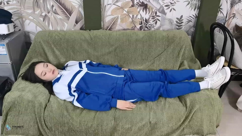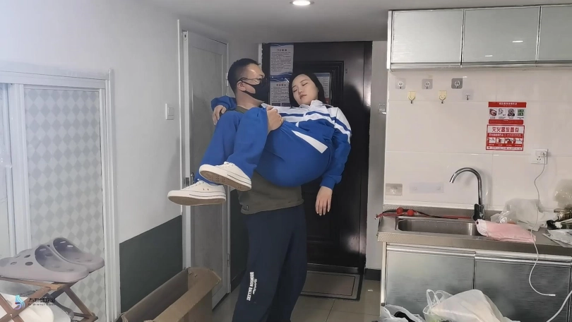 女主放学回家,楼道内被尾随,开门后被迷晕(激烈挣扎和呜咽持续10-20秒),公主抱进入室内,对着镜头环绕展示后(15秒以上),放置在沙发上,拍摄全身游走镜头(从头到脚的展示)。尾随者坐上沙发,将女主上半身搬起后,女主倚靠在尾随着身前(镜头给面部特写)。尾随者开始冰恋摆弄女主(抬起手臂放下、抚摸大腿、掀开眼皮、摆弄脖子和头部等),过程中女主醒来,随即被再次迷晕(激烈挣扎和呜咽持续10-20秒),随后尾随者继续冰恋摆弄女主,后将女主放平在沙发上,离开画面,随后再次给女主全身游走镜头(从头到脚的展示)。