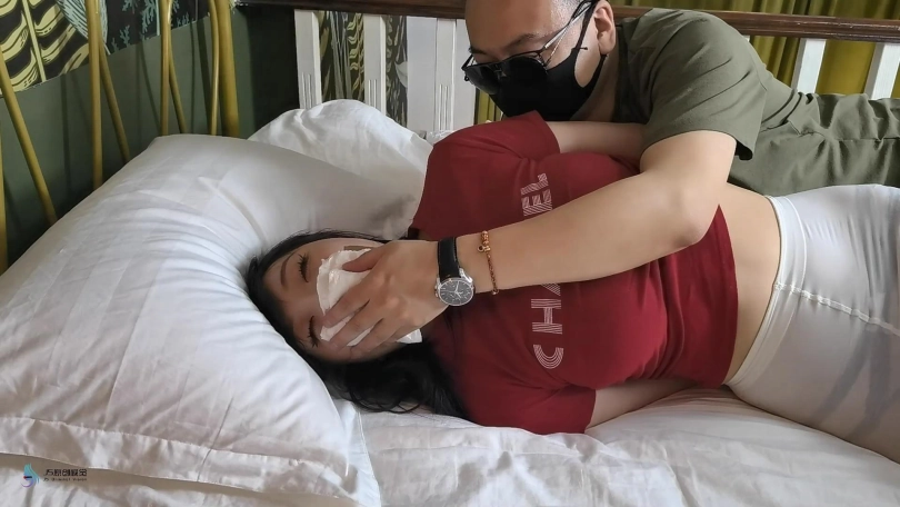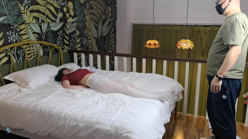 女主被捆绑在床上,镜头给女主全身游走镜头(从头到脚的展示),给足部和脚腕捆绑特写和脸部堵嘴特写。特写结束后女主醒来,开始在床上挣扎呜咽,持续约2-3分钟。随后尾随者进入房间内将女主迷晕,后将女主公主抱抱起,对着镜头环绕展示后(15秒以上),给足部和脚腕捆绑特写和脸部堵嘴特写,将女主抱至客厅沙发上后放下,随后坐上沙发,将女主搬至怀中,开始抚摸女主丝袜臀部腿部(固定镜头保证女主全身都入境),翻女主的眼皮,镜头给女主堵嘴的面部特写。随后将女主放回沙发面朝下,解开女主脚腕的绳子,开始冰恋玩弄女主脚部(抚摸脚面脚趾脚底,抬起后放下),抚摸女主小腿。期间女主醒来,爬起身逃向门口(手部捆绑尚未解开),被尾随者追上后从后抱住后迷晕(激烈挣扎+踢腿和呜咽持续10-20秒)。随后被公主抱抱起,向镜头展示后,将女主换成过肩扛抱,再次转圈向镜头展示(给足部特写和臀部特写)。将女主扛抱进入卧室后放置在床上,女主面朝上,后再次给女主全身游走镜头。