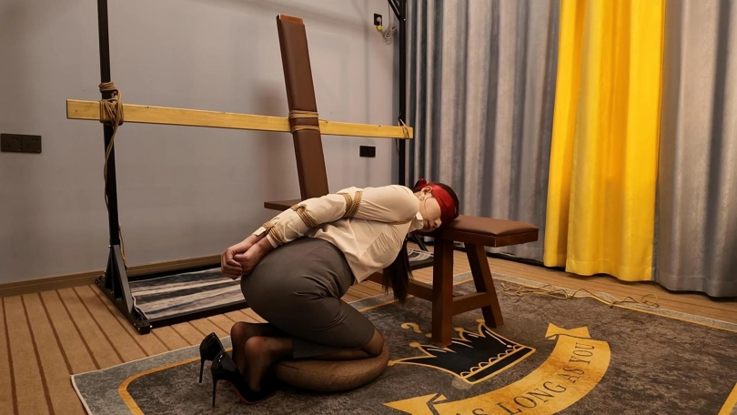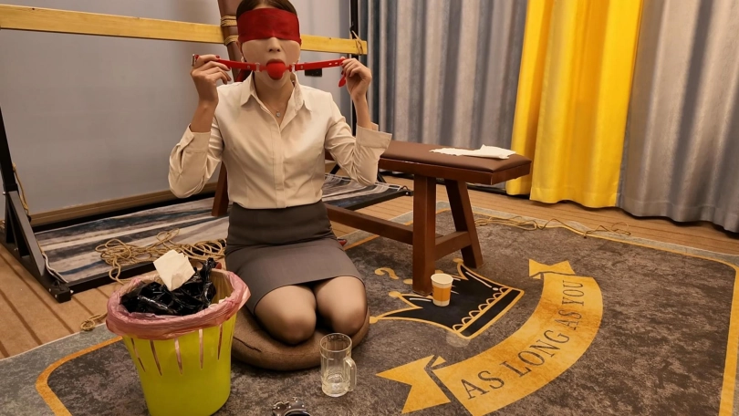 胶带捆的特别紧,也特别有感觉,接下来又给佳佳来了个欧式紧缚,这个客户是个资深爱好者,绑的特别紧,也特别好,佳佳柔韧性好不错,不过太紧了,不一会就受不了了,接下来的项目是柠檬口球口水收集,佳佳自己蒙是眼睛,客户趁着佳佳看不到,偷偷把口球换成最大号的,让佳佳自己带,真没有想到,超大口球竟然带上了,按口水流的哗哗的
