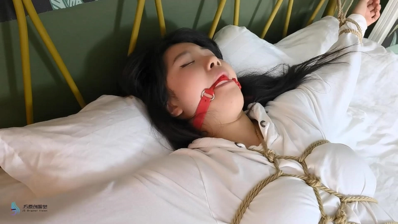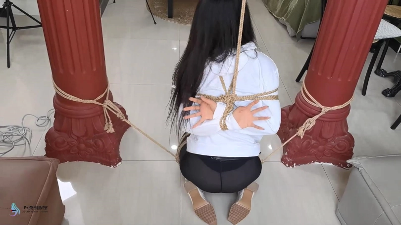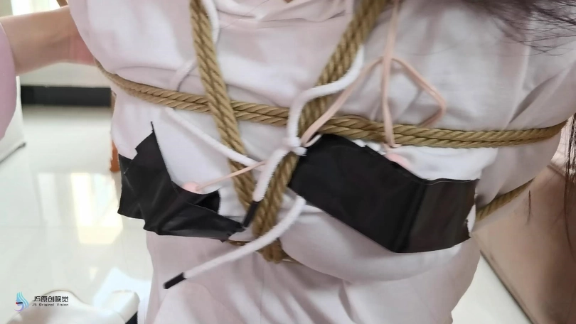 女劫匪伪装成外卖敲门,女孩将门打开,女匪拿出毛巾将女孩捂晕过去。女孩醒来发现自己双腿被折叠跪绑在地上,上身被身子吊起,两腿分别被两边绳子固定住。这时女匪走过来问家里钱在哪里,女孩不肯说,女匪拿来毛巾塞进女孩的嘴里,在用口球堵嘴,并对女孩说:“我有办法让你自己说出来。”说完女匪用棒棒刺激着女孩的裆部,在女孩的胸部放上TD并用胶带固定着。强烈的刺激上女孩疯狂的扭动着身体并发出呻吟声。没一会就晕了过去。