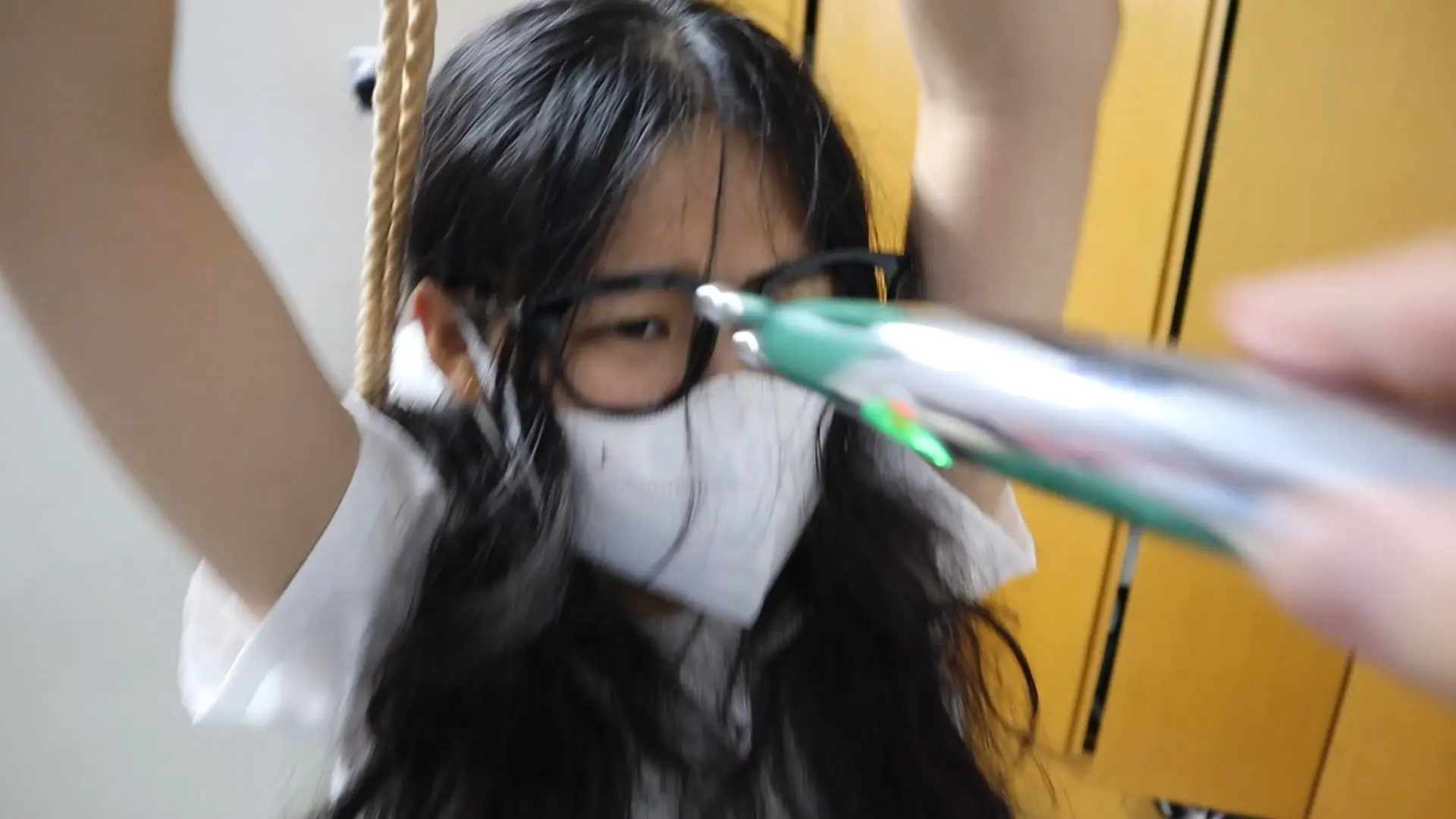 【荷仙少女】【优异眼镜少女兼职的噩梦】虞琳是一名想兼职模特的高挑女学生,来到拍摄房间里,脱下牛仔裤,换上可爱衣服裙子后刚拍动作就被坏人叔叔迷晕,醒来后发现自己被双手吊着绑了起来,这发现对方是调教女