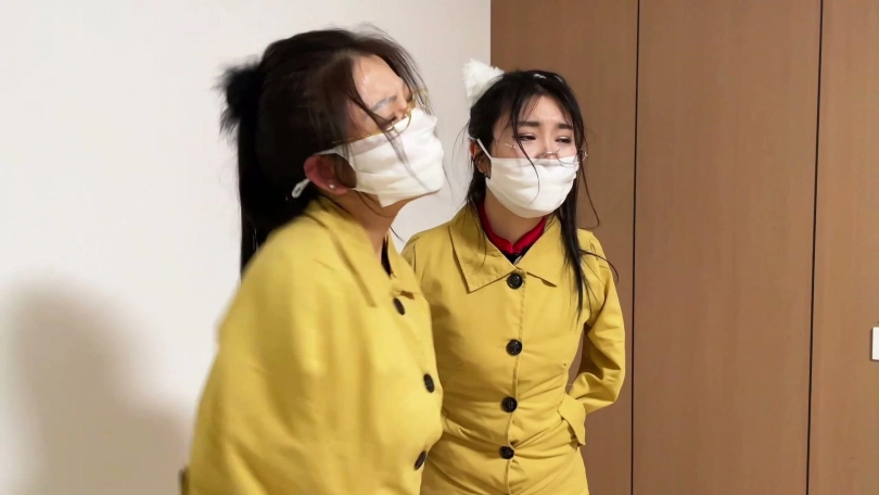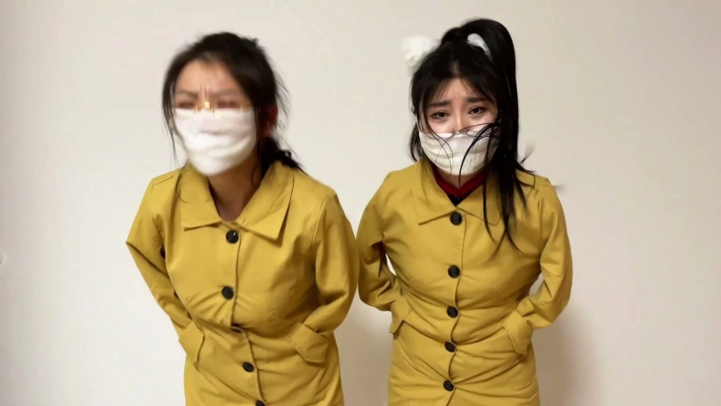 【云雀】《罕见双人伪装拘束 02》饱和式剧情 超有趣的双人伪装大衣伪装求救 白丝女奴们努力互相解缚 双层白丝美脚互相磨蹭蠕动
