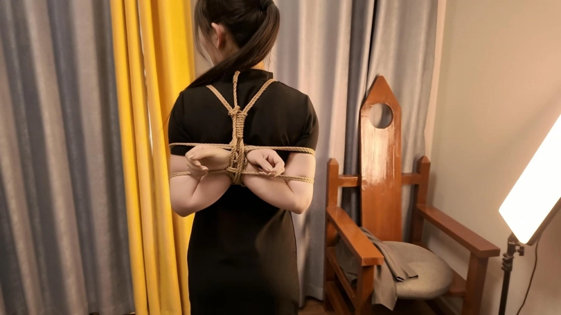 今天面试一名新模,新模娜娜、形象不错,来面试就要先捆起来试试柔韧性,接受度,先捆个日式放置,在给带上口球,真不错,第一次就能接受口球,紧缚放置,既然来了一个姿势咋能够,在来个后高手,捆的太紧了,坚持没一会就喊疼了,第一次,先放过她,留着慢慢培养,一个不错的好苗子.....