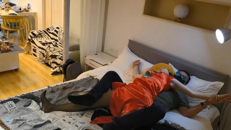女孩在家中休息,被潜入进来的男人大字控制。男人将女孩押解到客厅站好。房间里窜出多条绳子缠绕女孩全身,并编织出一张蜘蛛网将女孩牢牢的束缚在网中。女孩的嘴巴也被绳子塞入口球。男人咬着女孩的脖子和腿部,女孩被折磨的知道昏迷。