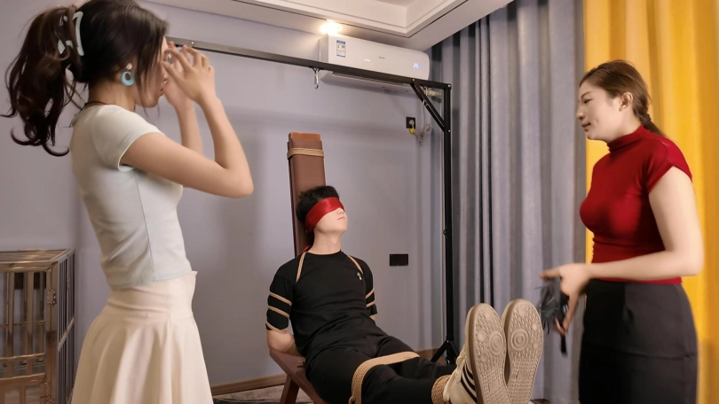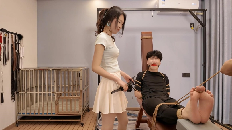 劫匪先把妈妈绑到了客厅,女儿回来看到妈妈被绑,赶快想给妈妈解绑,没想到被劫匪从背后捂晕,把母女二人捆绑到沙发上挠脚心,又用妈妈原味堵住妈妈的嘴,劫匪离开后,母女二人挣脱捆绑,没想到又被劫匪碰个正着,结果又被绑到地上,挣扎,丝袜堵嘴,最后母女挣脱捆绑,这个时候劫匪又回来了,母女藏起来,趁劫匪不备,抓住了劫匪,老虎凳拼命收拾QQ1642384671微信:shengyixiaoyuan加我注明妖狐吧