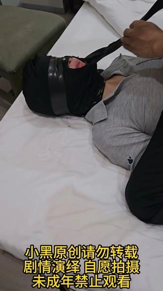 【小黑】胶带包头[X_X]玩弄大胸妹,[X_X],她主动让用胶带把手绑上。