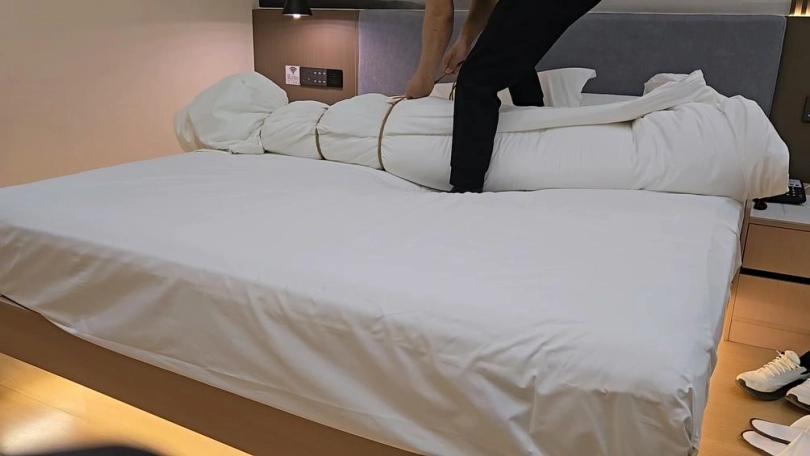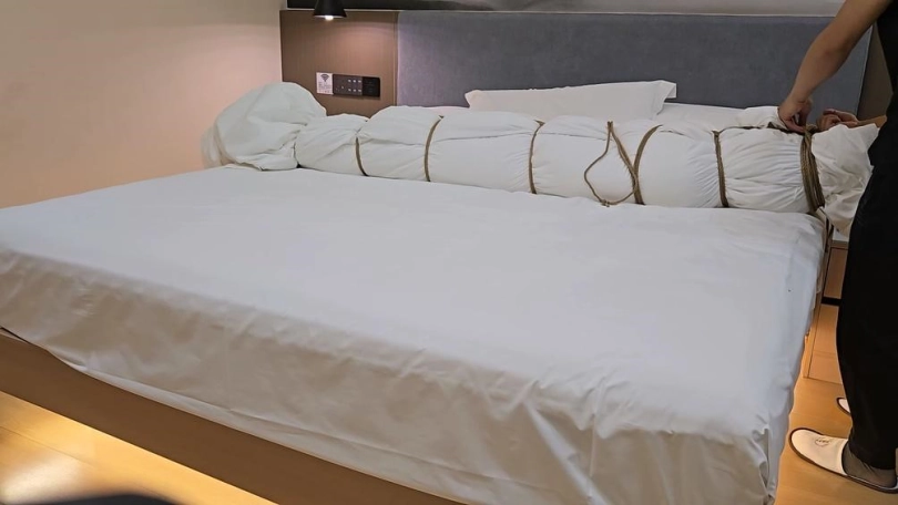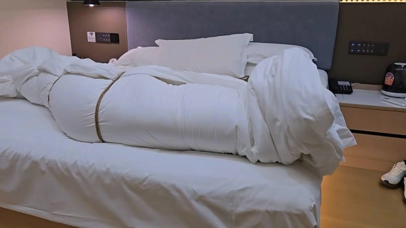 【小黑】棉被包裹坐脸,头也包进去了,手伸进去棉被摸她,她疯狂挣扎。