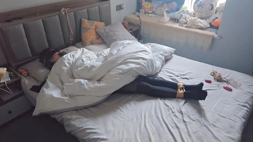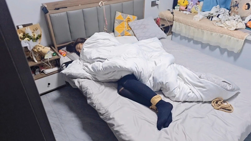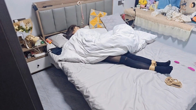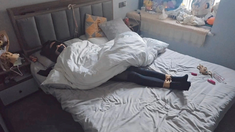 【欢乐谷】性感黑丝全包衣捆绑调教和捆绑放置睡觉到天亮
