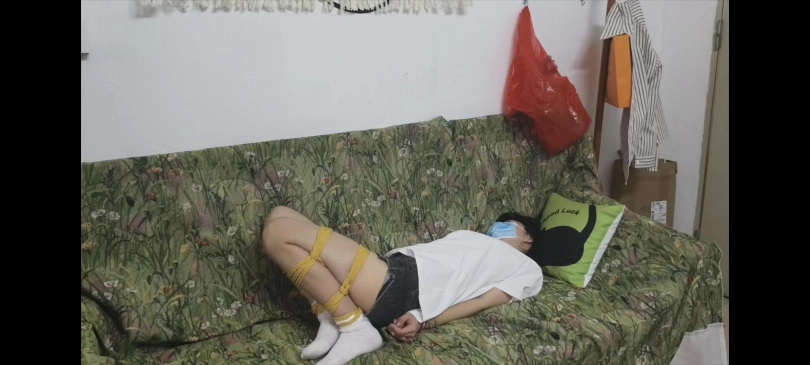 男人把女人大字捆绑在床上,夹上乳夹,先用假[X_X]控制女人[X_X]。女人最终受不了,央求男人让她到达,男人最终强暴女人后扬长而去。