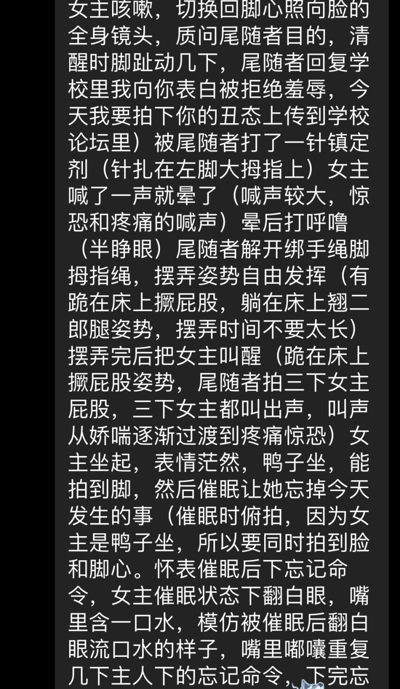 大学生米娅被电晕,后被扎催眠针,打鼾,随后又被怀表催眠熟睡,口水,放屁等