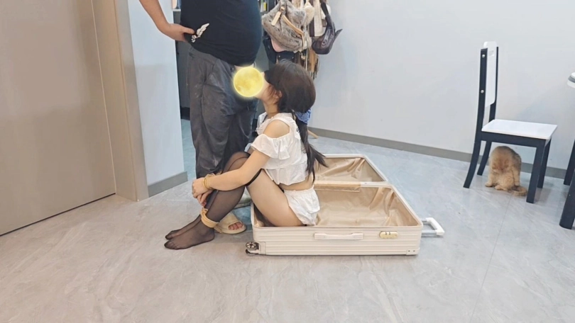 调教完之后,不够尽兴的s突发奇想,把小m捆绑好装进了行李箱,直接拖了出门,电梯,车库,小区,街道,垃圾堆旁,,各个地方进行放置,最后找了个垃圾堆直接丢弃离开,,,,,其实遇到正常人都不会怕,最怕的就是遇到那种流浪汉或者捡垃圾的直接把箱子捡走了就刺激了,,许久过后只留下行李箱里面传来不断的呜呜声和时不时的行李箱晃动的影子!