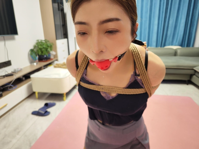 佳佳第一次尝试M腿立起来,佳佳柔韧性越来越好了、口球堵嘴。口水也是特别的多。