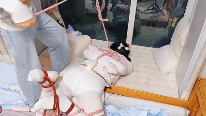 第四阶段:寻找到了指定道具,玩具+1 但是,游戏来到最地狱的部分,露露需要被绑成折腿缚并且马具口塞蒙眼、郊狼持续电击下拿到能拯救露露的道具: