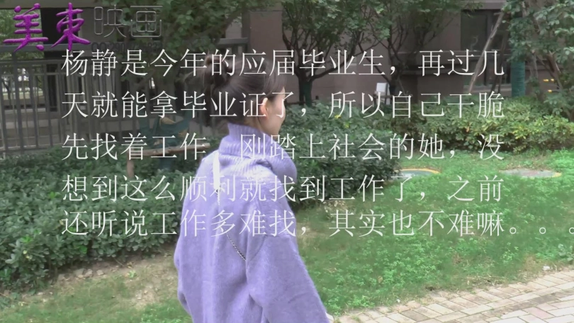 杨静是今年的应届毕业生,再过几天就能拿毕业证了,所以自己干脆先找着工作。刚踏上社会的她,没想到这么顺利就找到工作了,之前还听说工作多难找,其实也不难嘛。。。