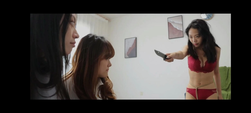 在不速之客光临后,白丝的妹妹、肉丝的绑匪、黑丝的姐姐都遭到了绑架。一番激烈的挣扎后,白丝妹妹和黑丝姐姐先挣脱了捆绑,结果这两个塑料姐妹直接吵了起来,反而被后挣脱的绑匪挟持了。风水轮流转,最终胜出的绑匪洗劫了姐妹的财产后独自离去,留下被五花大绑的塑料姐妹继续吵架。