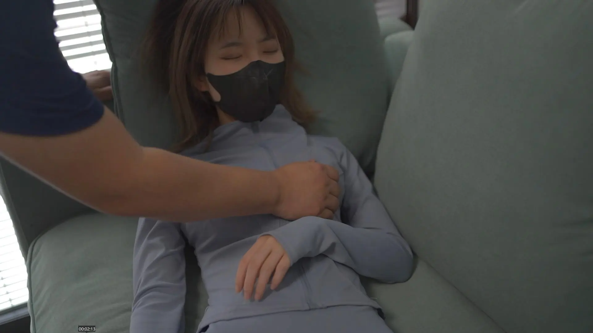 入室绑架正躺在沙发上睡觉的嗷嗷,对嗷嗷进行了一系列咸猪手行为,在将嗷嗷掐晕后。