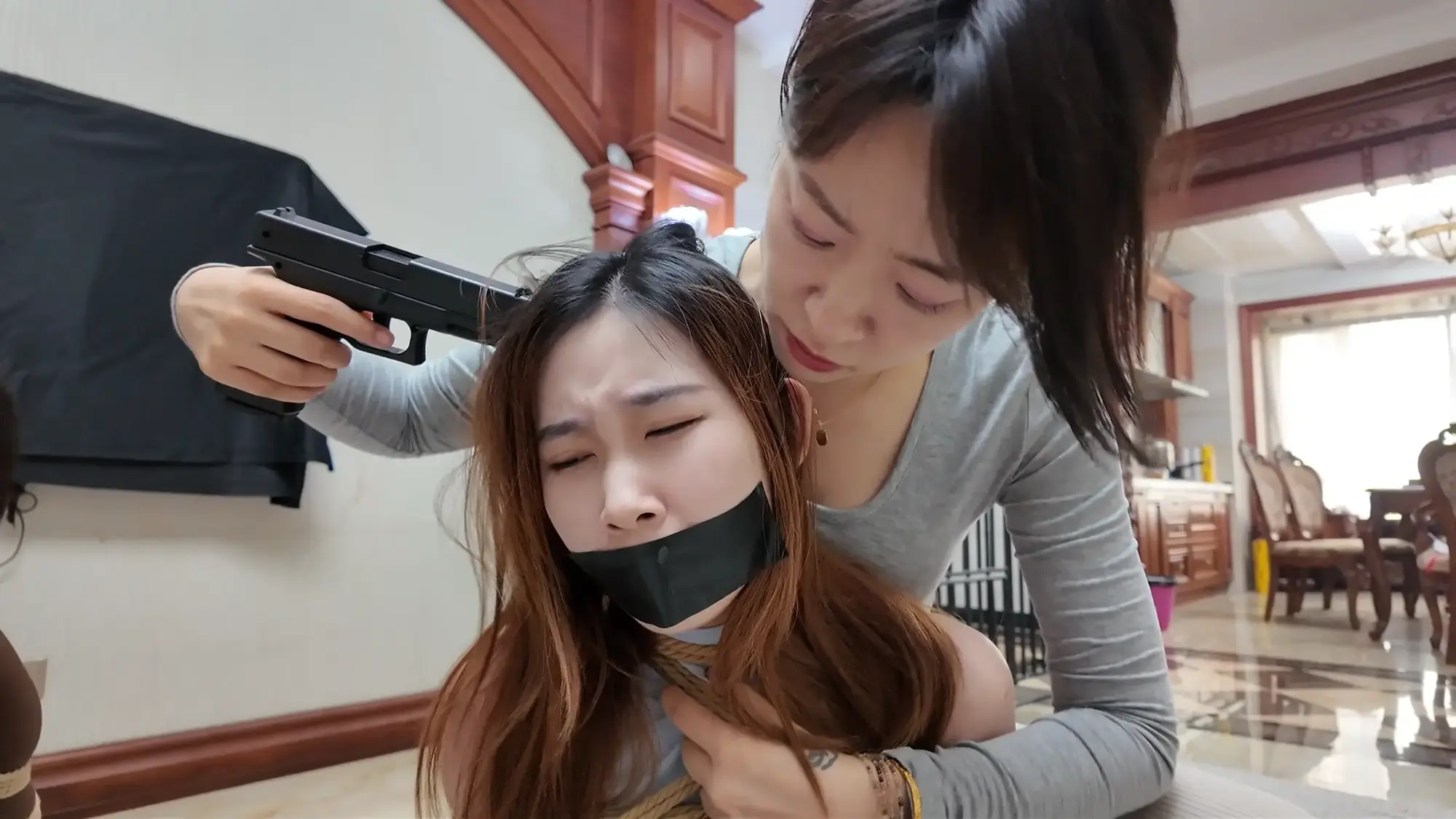 雨诺与南清一前一后被带到了囚禁她们的地方,一番挑逗后南清双手双腿也被紧密捆绑起来,雨诺也被团缚侧躺在地上,米粒开始肆意玩弄两人的身体,并时不时表示两人的身材很好,这次又能卖个好价钱,她先后拿道具抽打两人的身体,并用手挠两人的脚取乐,最后甚至用脚挑逗两人。玩累的米粒伸了伸懒腰,把男人叫出来表示自己要休息,让他看会儿两人。