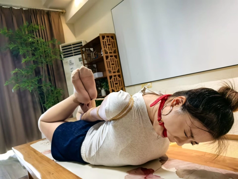 忙里偷闲约小Y来一次捆绑挣脱,看看自己的手艺退步没有。看着妹子满头大汗的样子,我就放心了