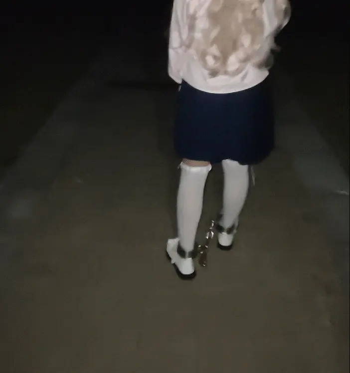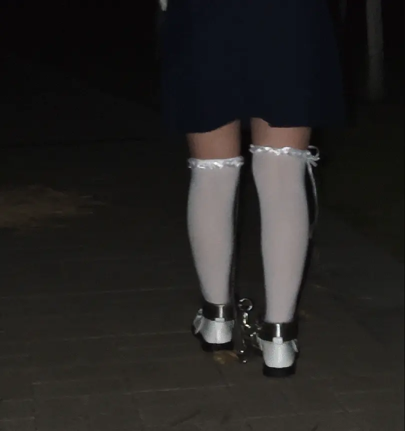 今天,大一新生苏苏刚考完期末考试就迫不及待的想穿上新衣服戴着镣铐去户外游玩,于是我带着她来到了一个人迹罕至的公园,公园旁有零零散散几户人家,旁边的运河不断有船舶略过,苏苏穿着崭新的JK,戴着猫耳楚楚动人,叮叮当当的连体镣铐伴随着轻快的脚步在公园里回荡,可谁知转角遇到爱,与一位散步的大叔撞了个满怀,戴着连体铐的苏苏被一览无遗。大叔虽有些疑惑,但还是继续遛弯了,苏苏吓得一动不敢动,毕竟这身打扮太显眼了,走了一段路后,大叔又折返了回来,想必是发现了不对劲,苏苏赶紧逃离现场,坐到了长椅上揉着被脚镣禁锢麻了的双脚,还处在被发现的惊魂未定之中......