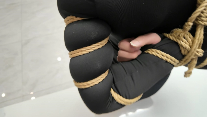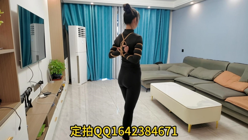 紫涵穿健美裤更有一番韵味,五花紧缚更显身材,按客户要求,必须紧,就是紫涵这么厉害的绳模,在五花拉绳这一块,照样拉的叫换