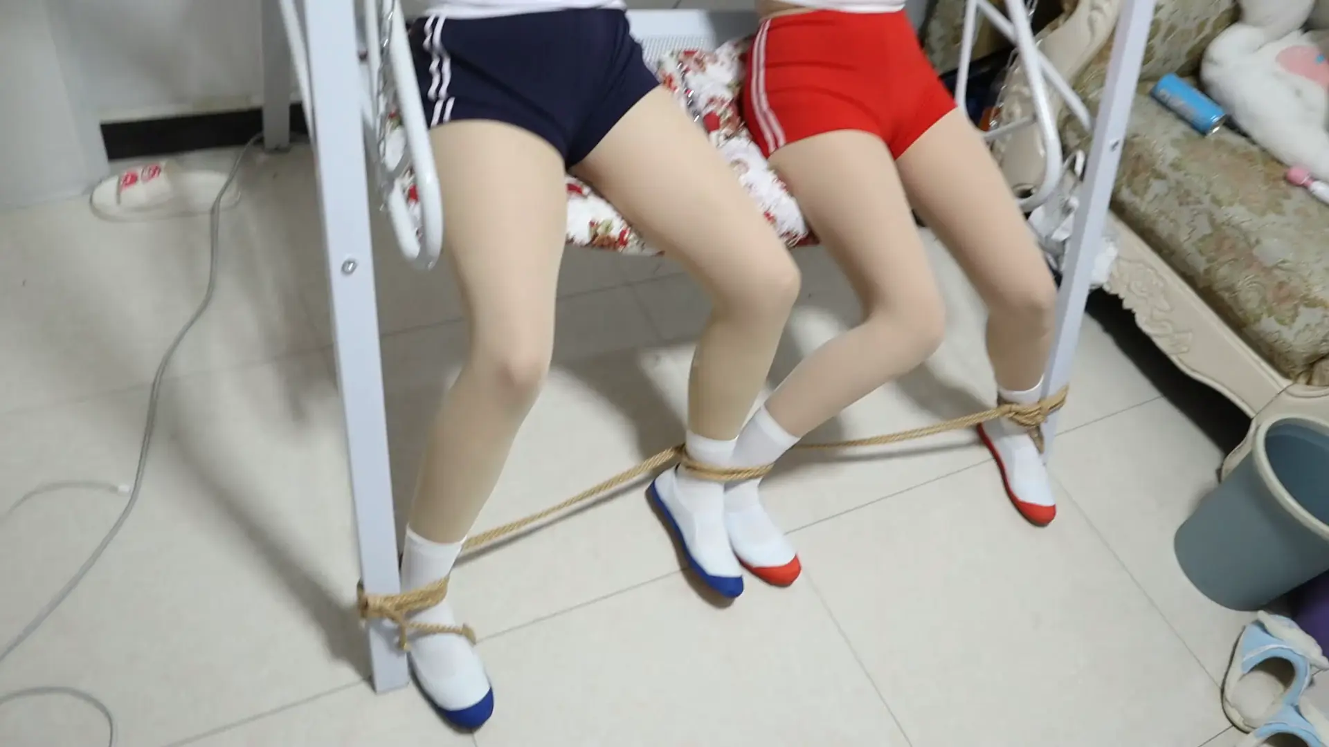 【荷仙少女】{少女A安安与玥 }双马尾两个少女M被连缚在秋千上,捆绑封嘴体操运动服无助挣扎+鞭打+电击虐待,语言羞辱让其屈服,两个女孩痛苦的挣扎到疯狂