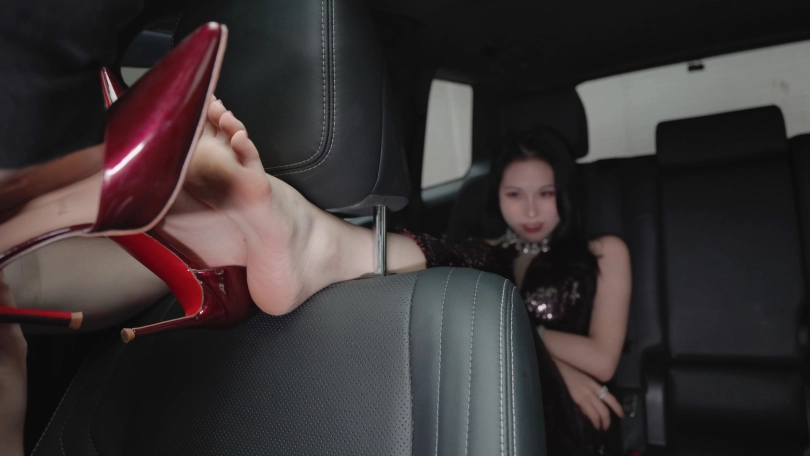 然后我把她脚锁在汽车头枕上,她并不知道接下来要拍什么。