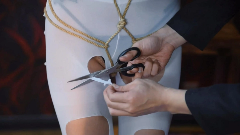 提前定了一个情趣酒店的房间作为拍摄场地,恰好房间里有个钢管舞台,导演拍摄前一天灵感大发,连夜写了一个剧本,把定拍要求串联起来形成这部佳作,有透透的裹胸、强高、竹夹虐乳、白丝、腋下、剪衣、强吻等要素,演员的演技也是可圈可点,特别是声音简直销魂!