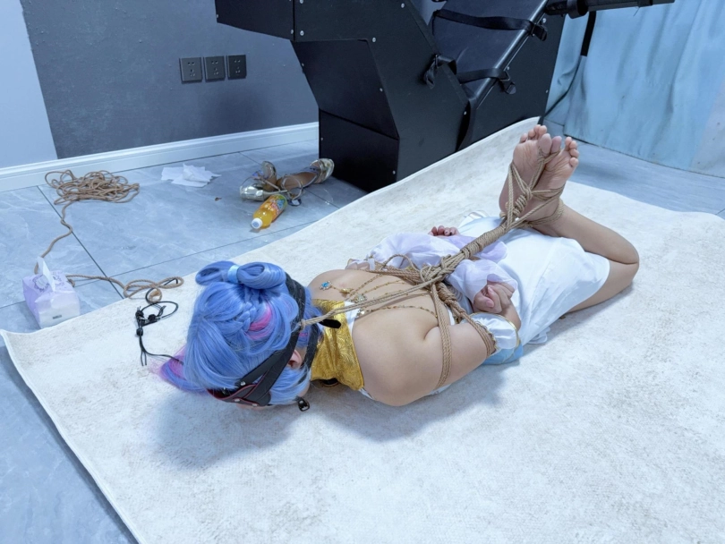 这次真的狼狈惨了,绑到几乎想吐,哭的鼻涕都糊在脸上,超级狼狈,前后对比超级反差——刚cos好的时候超级惊艳可爱,被折磨哭哭后眼泪鼻涕都流在脸上,口水也拉丝,狼狈的不像话。