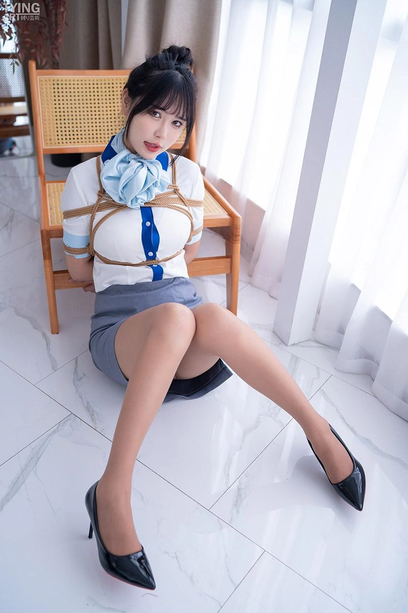 空姐真由理刚刚下飞机回到家。然而,鲜为人知的是,除了日常的乘务员服务外,她还提供一项特殊服务:“捆绑模特”。现在,她面带微笑,准备就绪,被一位绳艺师捆绑起来。捆绑让她的身材更加曼妙。