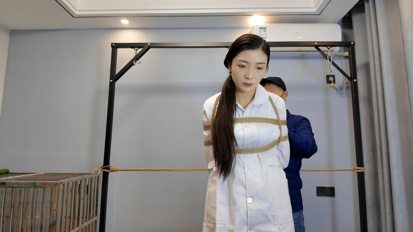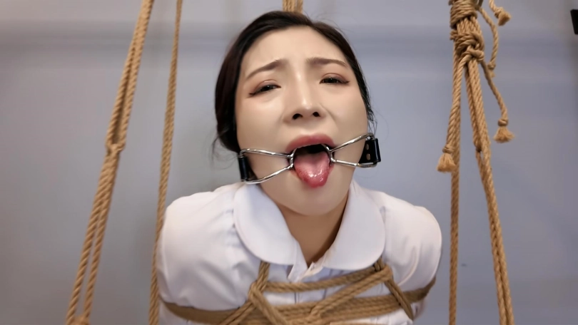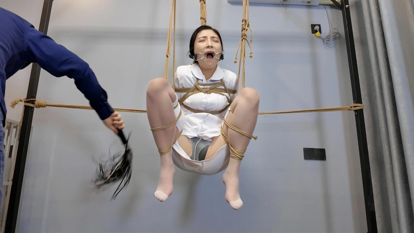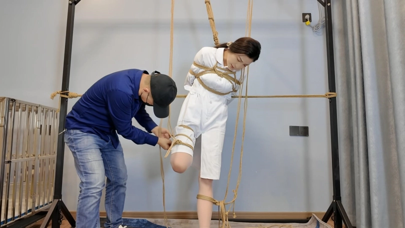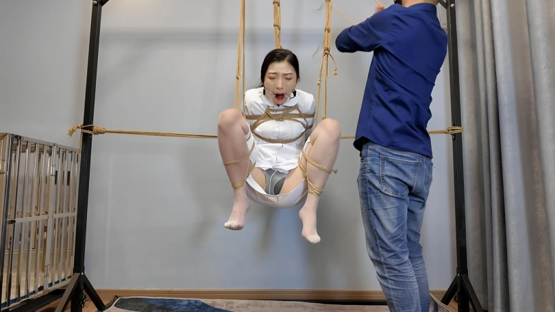 瑜伽教练玩德州扑克输了,按约定换好服装,被绑成对应的姿势,M腿吊,还要被不锈钢口伽勒嘴,这个姿势难受至极,伸出舌头痛苦挣扎,接下来换上对应的瑜伽服,走绳,细细你尼龙绳上打满了节,深深的勒进下面,在指令中前前后后的来回摩擦,嘴上还被带了口球,终于在来回摩擦中达到了高超