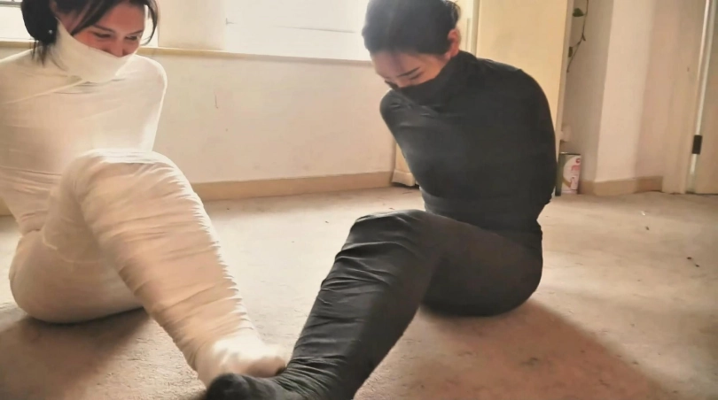 【逍遥】《黑白木乃伊姐妹 上》双御姐被下迷药全包成木乃伊 逐渐被包裹 诱人蠕动的黑白绷带人茧~