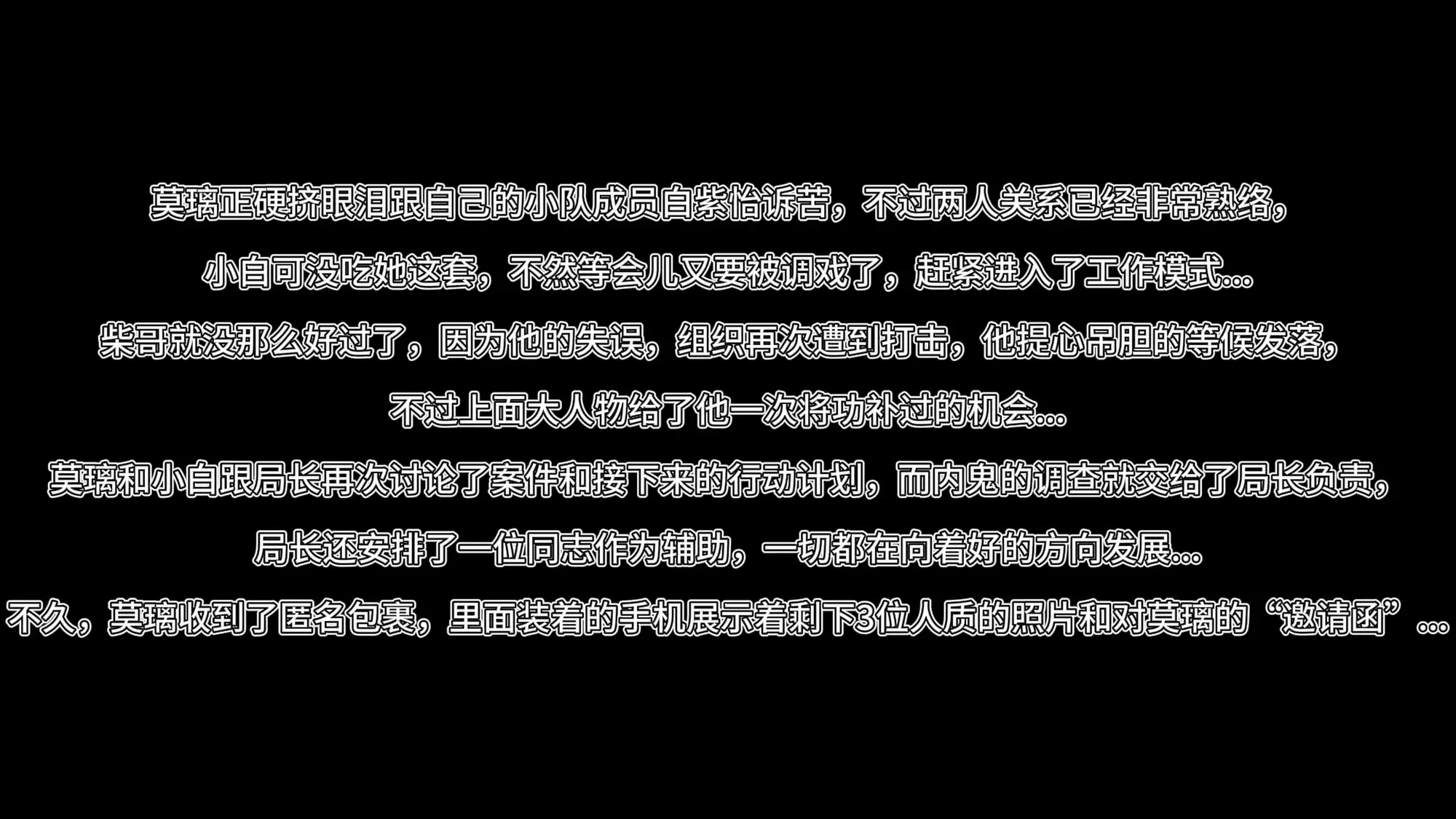 莫璃和小白跟局长再次讨论了案件和接下来的行动计划,而内鬼的调查就交给了局长负责,