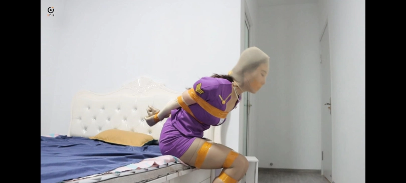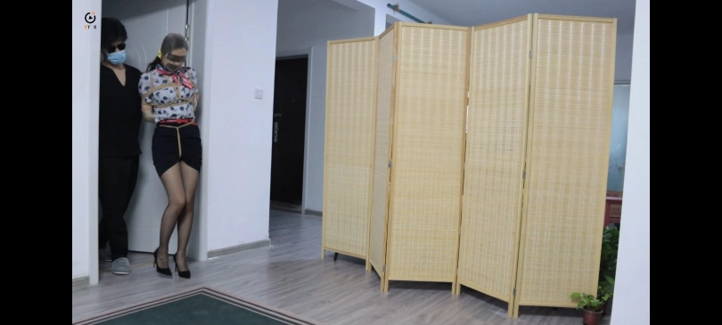 画面一转毒贩已经用黄色胶带将小楠上半身绑了起来(如图),然后让她自己走进了卧室。随后毒贩就锁上了房门。期间,小楠在卧室里来回走动,然后去到卫生间照了下镜子(给特写),五分钟后,毒贩走了进来,对她说:“货没有问题,你可以回去了。”小楠看了看毒贩丝毫没有给自己松绑的意思。随后小楠示意毒贩给自己解开胶带。毒贩不怀好意地笑了笑,说:“怎么?不想走了?”小楠听了疯狂摇头。毒贩说:“既然这样,那就。。”话还没说完,就把小楠抱进了屋内......