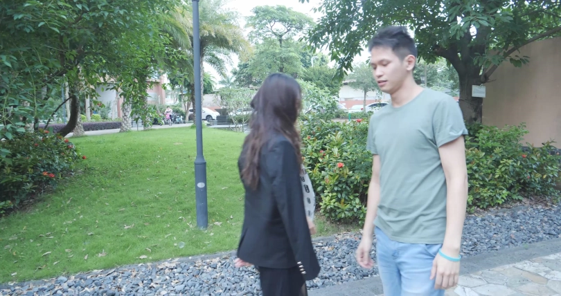 从一旁突然又跑出一个女孩,一把将此前的女孩拉到背后。
