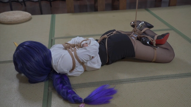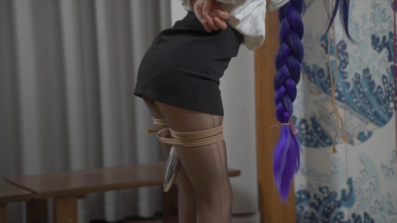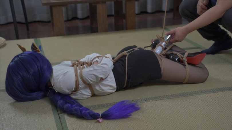 【象人】雷电将军你怎么拉了?小0-雷电将军,但是OL版。单脚吊缚+逆海老缚,悬吊震动,挣扎无用。