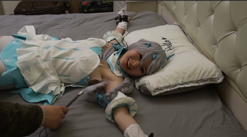 【78号束艺】Cosplay琪亚娜冬之公主白丝肉丝润滑剂大字TK