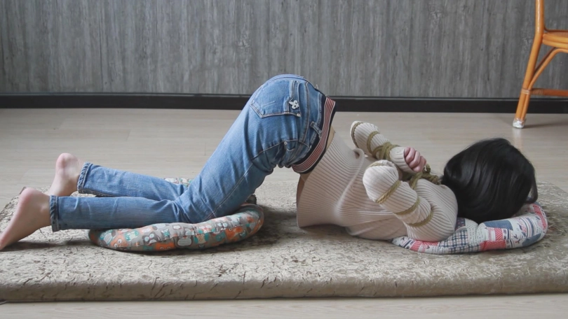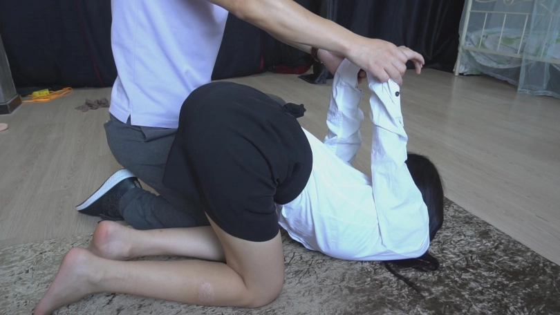 珊珊,身材与颜值都很棒。柔韧性也是很不错的。两套服装,反扭捆绑。
