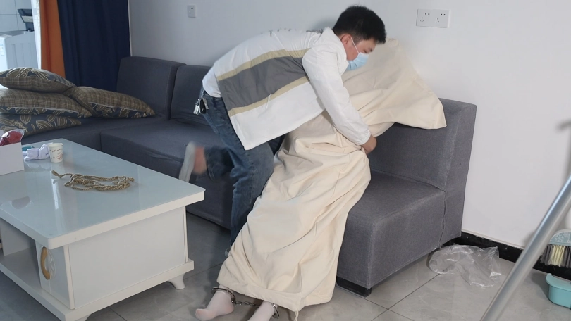 摄影师在网上看到了妹子自拍的照片心生邪念,把妹子请到家中做客,相谈甚欢之时摄影师给了妹子一个盒子(装道具的那个盒子就行),说是一定要让妹子收下的礼物,妹子打开一看,里面放的尽是绳子跳弹[不可描述]手铐这些调教道具。妹子一时惊得不能动弹,摄影师趁机用沾满麻醉剂的手帕将兔子捂晕。摄影师脱去妹子的鞋子,肆意的玩弄着觊觎已久的妹子美丽的身体。玩到一半时,他脱下妹子原来穿的过膝袜,用着两条袜子封住了妹子的眼和嘴,嘴上再蒙上一层胶带,再给妹子换上了一条白色连裤袜。玩得有些累之后,摄影师把妹子简单地绑了起来,去隔壁房间休息了。惊醒的妹子挣脱了束缚,在尝试逃离的时候被赶来的摄影师再一次捂晕。摄影师用手铐脚镣束缚住妹子后把她装进一个麻袋(要有装进去和拿出来的镜头)中扎紧袋口,把她带到了妹子自己家中。